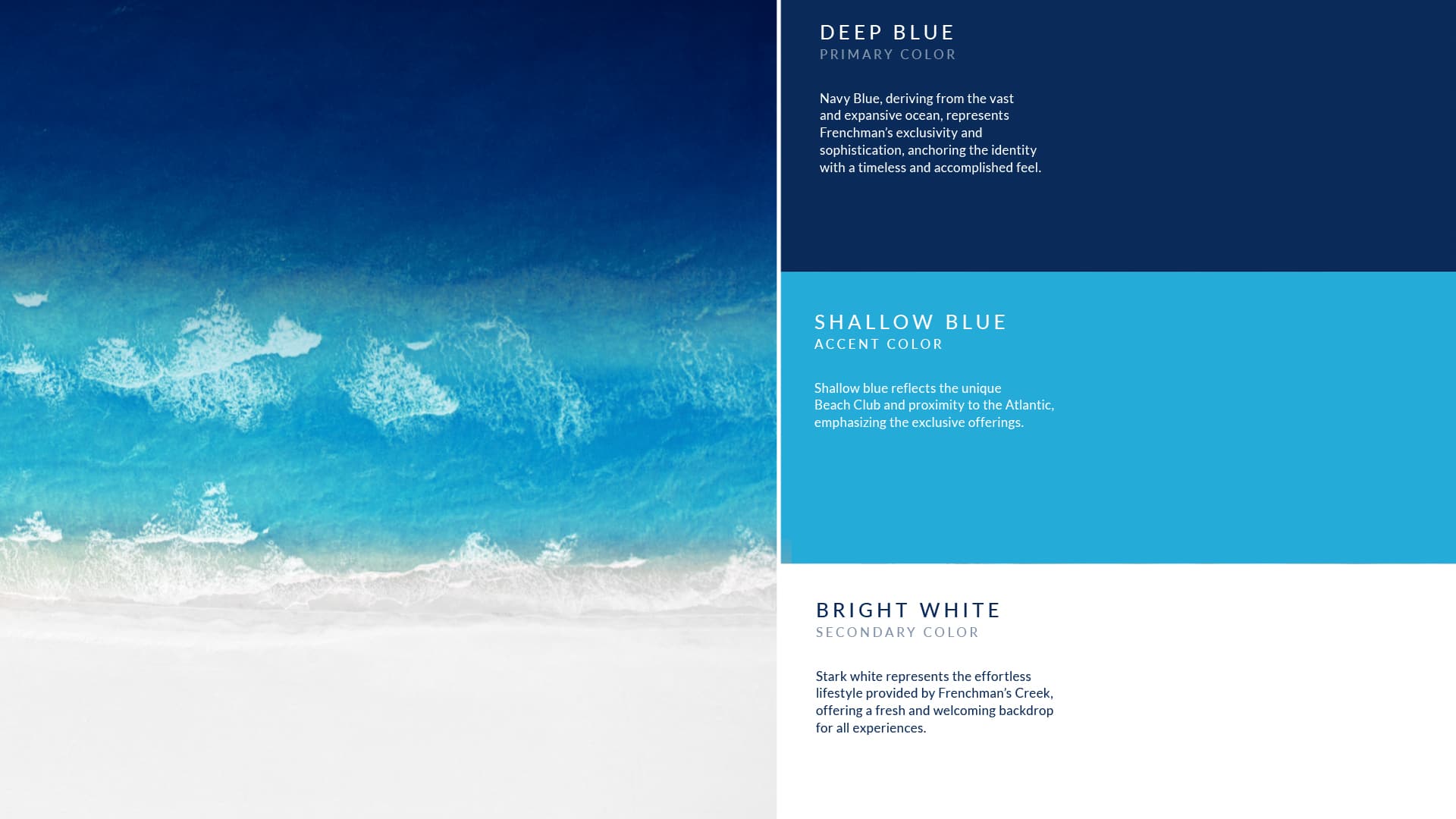The refined visual identity of Frenchman’s Creek Beach & Country Club represents the effortless and understated elegance of the club. The simple wave in the new monogram symbolizes both the creek that runs through the community and the members’ exclusive access to the beach in an iconic visual style that supports the club’s vision for the next generation.